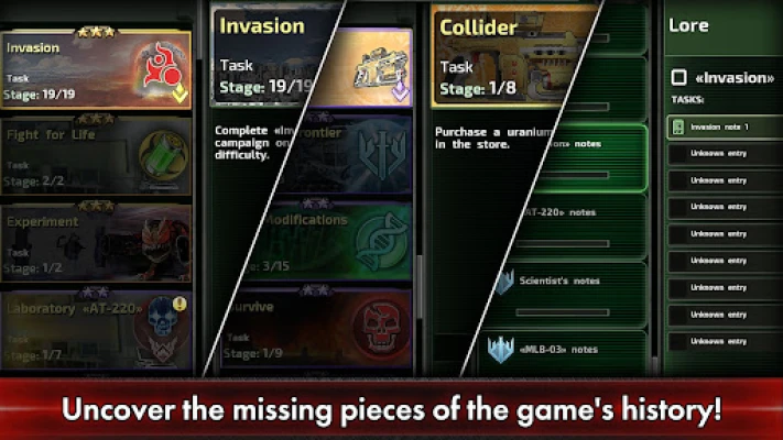 Svoje zručnosti začnite brúsiť v ústrednom veliteľstve, kde vás čakajú misie, ktoré vás postupne zavedú do srdca konfliktu. Naučte sa základy, ale rýchlo sa pripravte na skutočné výzvy. Každá úloha je príležitosťou nielen zdokonaľovať sa v boji, ale aj odkrývať skryté poznámky rozširujúce hlboký príbeh a udalosti univerza Alien Shooter. Nazbierajte všetky kúsky tejto skladačky a odhaľte tajomstvá, ktoré vás posilnia pre legendárnu kampaň z pôvodnej hry, teraz dostupnú na najvyššej obtiažnosti. Preukážte svoju silu aj v aréne, kde stretnete tých najtvrdších protivníkov a zapíšete sa do histórie víťazstiev.
