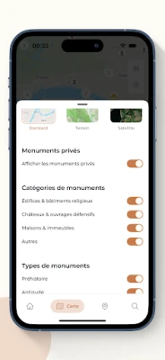 Aplikácia Carte du Patrimoine vám umožňuje prispôsobiť si objavovanie podľa vašich záujmov vďaka pokročilým možnostiam vyhľadávania. Filtrujte pamiatky podľa obdobia výstavby, ako sú stredoveké, renesančné či moderné diela, alebo podľa ich typu – či už ide o kostoly, impozantné zámky alebo strategické opevnenia. Vytvorte si vlastnú cestu objavovania, presne podľa vašich historických preferencií.