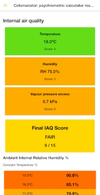 V srdci funkčnosti The Colemanator APP leží sofistikovaná analýza. Na základe niekoľkých jednoduchých údajov, ktoré poskytnete – či už ide o teplotu, relatívnu vlhkosť alebo iné relevantné faktory – aplikácia okamžite vypočíta psychrometrické vlastnosti vzduchu. Tieto detailné informácie sú následne spracované prostredníctvom našej pokročilej „Matice kvality vnútorného vzduchu" (IAQM), ktorá transformuje surové dáta na zrozumiteľné a praktické závery.