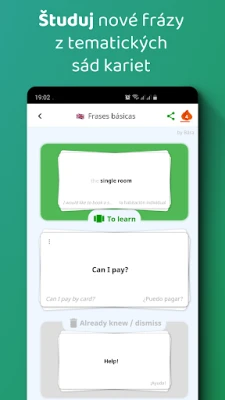Srdcom aplikácie DuoCards je dynamický systém kartičiek s inteligentným rozloženým opakovaním. Predstavte si, ako ľahko prechádzate cez slová a frázy: jednoduchým ťahom doprava potvrdíte, že ich poznáte, zatiaľ čo ťah doľava signalizuje potrebu ďalšieho precvičovania. Tento systém zabezpečuje, že sa k vám opakujú slová presne vtedy, keď ich najviac potrebujete pre trvalé zapamätanie. Vďaka integrovanému prekladaču s podporou viac ako 50 jazykov, vrátane portugalčiny, kórejčiny a japončiny, máte okamžitý prístup k významom, kedykoľvek to potrebujete.