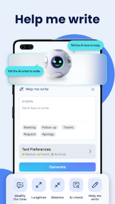 Srdcom inovácií AI Email APP je funkcia AI kontrola, ktorá dohliada na vašu korešpondenciu v reálnom čase. Či už píšete novú správu alebo odpovedáte, umelá inteligencia automaticky kontroluje gramatiku a pravopis, pričom navrhuje vylepšenia a pomáha generovať precízny obsah. Táto inteligentná asistencia vám nielenže šetrí čas strávený kontrolou, ale aj optimalizuje proces tvorby odpovedí, čím zaisťuje, že vaše správy budú vždy bezchybné a profesionálne. Prehľadné priečinky a prispôsobiteľné filtre navyše zabezpečia, že si svoju poštu ľahko usporiadate a prioritizujete.