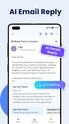 Či už ste zaneprázdnený profesionál žonglujúci s viacerými účtami alebo technologický nadšenec hľadajúci maximálnu efektivitu, AI Email APP je navrhnutá tak, aby prekročila vaše očakávania. Zažite pohodlie okamžitých upozornení na nové správy, ponorte sa do práce s pútavým tmavým režimom šetriacim zrak a buďte si istí, že vaše citlivé dáta sú chránené pokročilým šifrovaním. Zjednodušte si digitálny život a prevezmite kontrolu nad svojou schránkou ako nikdy predtým s AI Email APP – aplikáciou, ktorá spája správu e-mailov s produktivitou poháňanou AI.