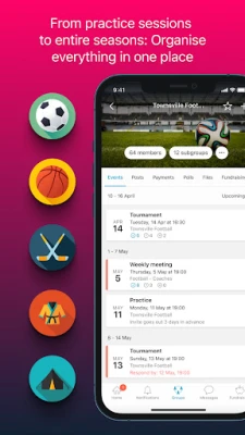 Správa udalostí nebola nikdy jednoduchšia. Či už plánujete jednorazovú akciu alebo pravidelné tréningy, Spond vám umožní ich rýchlo vytvoriť. Importujte zápasy z kalendárových súborov alebo bezproblémovo synchronizujte všetky udalosti s kalendárom vo vašom telefóne. Detailne nastavte časy stretnutí a miesta s interaktívnymi mapami, aby každý vedel, kam a kedy prísť. A pre rodičov ponúka Spond špeciálne výhody: možnosť odpovedať za svoje deti, dostávať dôležité oznámenia o ich aktivitách a dokonca umožniť viacerým opatrovníkom spravovať to isté dieťa, čím zabezpečíte maximálnu koordináciu a informovanosť.
